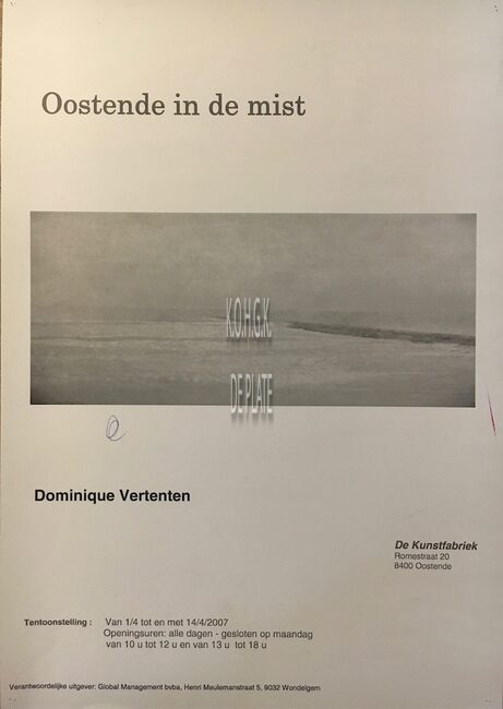 Affiche : Dominique Vertenten. Tentoonstelling: Oostende in de mist. De Kunstfabriek. Van 1 tot 14 april 2007