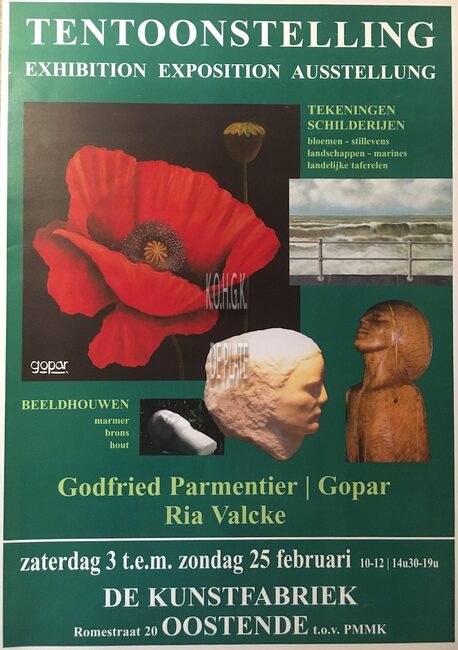 Affiche : Godfried Parmentier, Lopar Ria Valcke. Tentoonstelling = Exhibition, exposition, ausstellung. De kunstfabriek. Van 3 tot 25 februari