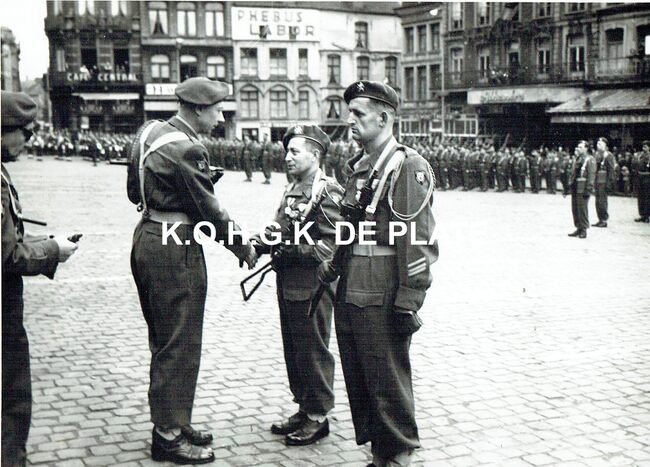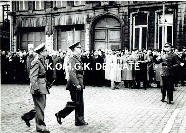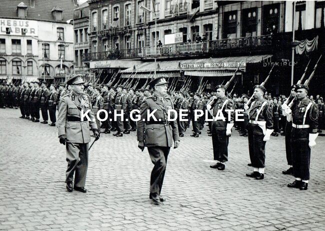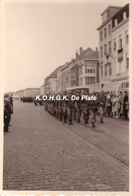 Foto 7 x 10.5. Peloton van de landmacht op de visserskaai