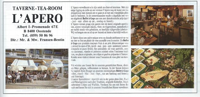 Advertentie : Taverne Tea-Room L'Apero. Albert I-promenade 67E, Oostende