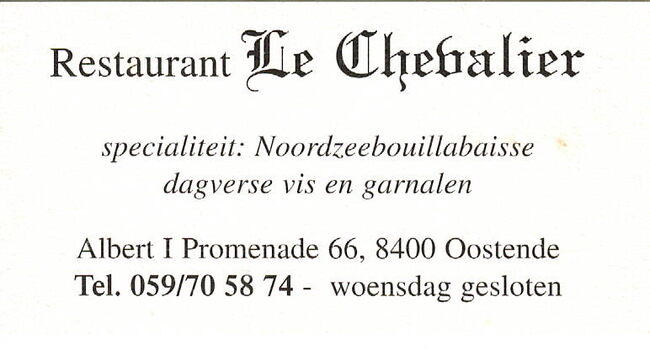Advertentie : Le Chevalier. Restaurant Tea-Room. Albert I-promenade 66, Oostende