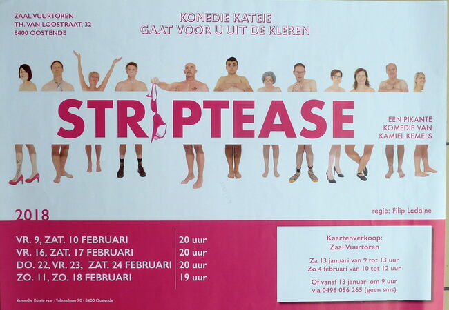 Affiche : Komedie Kateie. Striptease. Zaal Vuurtoren. 09-11, 16-18, 22-24/02/2018