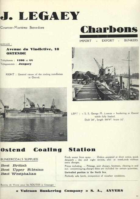 Import - Export - Combustibles - Shipbrokers - Stevedores - Bunkering Contractors. Foto : Het vrachtschip "Rokos Vergottis" aangemeerd in het Vlotdok.