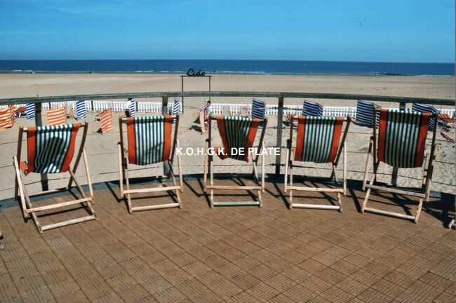 Formaat : 13 x 18 cm. - Strandzetels op de dijk aan jet Groot Strand en de Lido gezien vanaf de Albert I-promenade.
