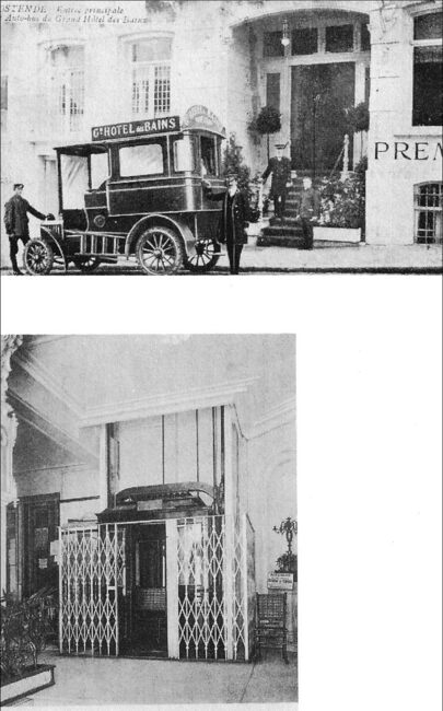 Foto : De lift en de taxi van het "Premier Grand Hotel des Bains" (1908)