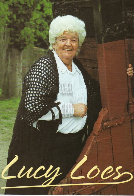 Gekleurde foto 15cm x 21cm. Lucy Loes met een deel van het bestuur bij overhandiging van de kostuums van de Gilles van de Zee
