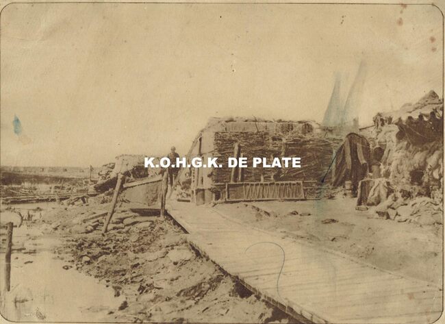 Formaat : 20 x 28 cm. - Un poste de secours a la dique de l'yser (Environs de Dixmude, mai 1916. - Hulppost aan de IJzer te Diksmuide