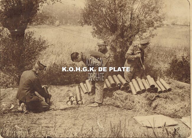 Formaat : 20 x 28 cm. - Un dépot de douilles sur la route de woesten (juillet 1917)
