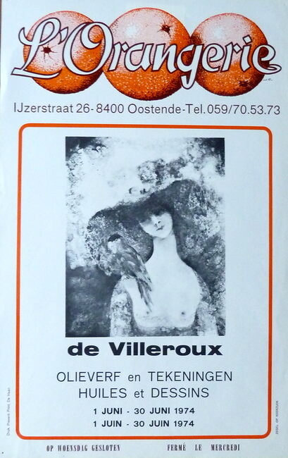 Affiche : de Villeroux. Olieverf en tekeningen = Huiles et dessins. Tentoonstelling. L'Orangerie. 1 - 30 juni 1974
