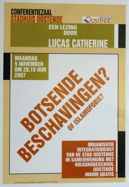 Formaat : 42 x 30 cm. Een lezing door Lucas Catherine. Organisatie : Integratiedienst van de stad Oostende in samenwerking met Volkshogeschool Oostende