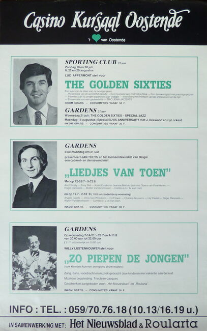 De gekende Brugse quizmaster (en zanger) Willy LUSTENHOUWER in actie tijdens het TV spel "Eén tegen Allen" op het Wapenplein