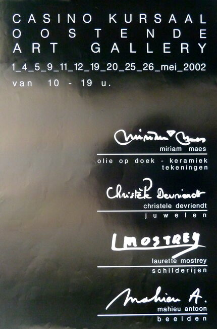 Affiche : Miriam Maes, Christèle Devriendt, Laurette Mostrey, Mahieu Antoon. Casino-Kursaal Oostende. Art Gallery. mei 2002