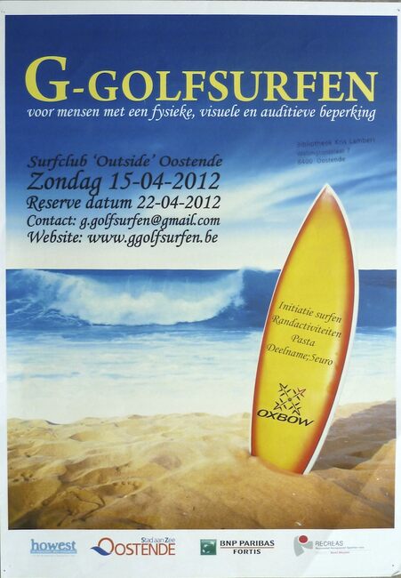 Affiche : G-golfsurfen. Surfclub 'Outside' Oostende. Zondag 15-04-2012.