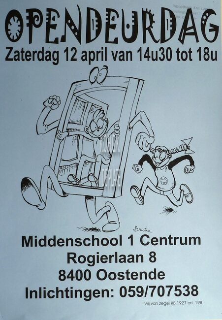 Affiche : Middenschool 1 Centrum. Opendeurdag. Rogierlaan 8. 12 april .... (?)