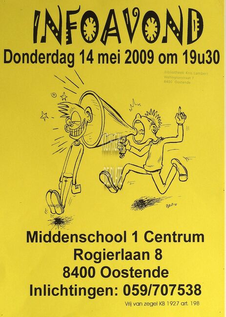 Affiche : Middenschool 1 Centrum. Infoavond. Rogierlaan 8. 14 mei 2009.