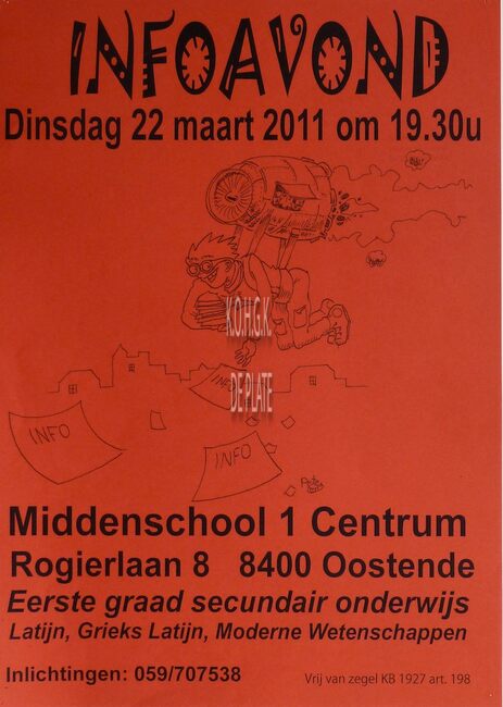 Affiche : Middenschool 1 Centrum. Infoavond. Rogierlaan 8. 22 maart 2011.