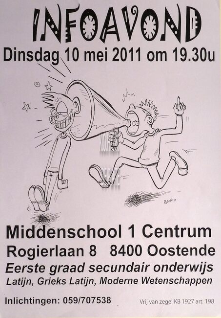 Affiche : Middenschool 1 Centrum. Infoavond. Rogierlaan 8. 10 mei 2011.