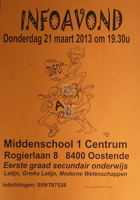 Affiche : Middenschool 1 Centrum. Infoavond. Rogierlaan 8. 21 maart 2013.