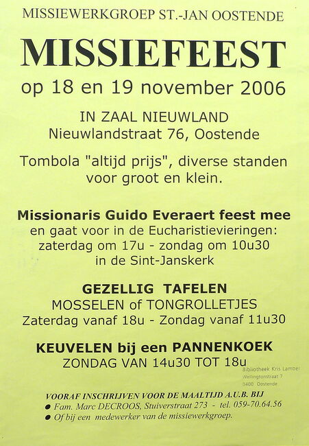 Affiche : Missiewerkgroep St.-Jan Oostende. Missiefeest. Zaal Nieuwland. 18-19/11/2206
