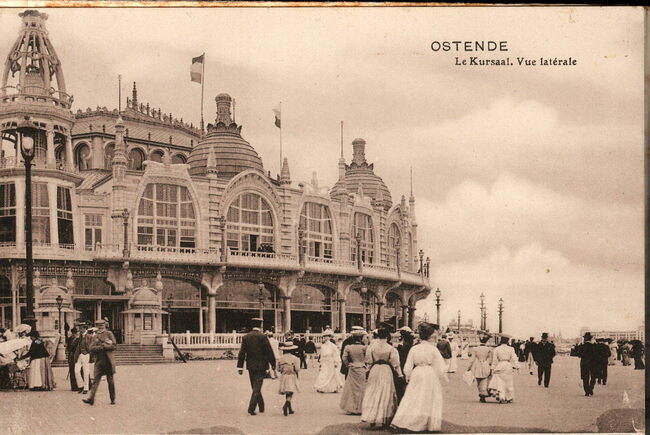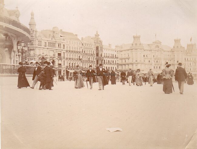 Formaat : 11 x 8 cm. - Oostende in de Belle Epoque. De Zeedijk met zicht op de grote hotels en links, detail van het Kursaal. Dit plekje wordt ook "Petit Nice" genoemd.