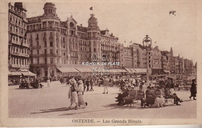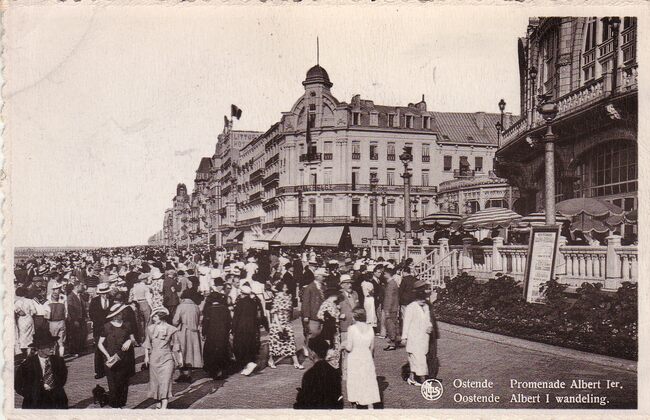 Digue est De Albert I-Promenade gezien vanaf het derde kursaal. Op de hoek met de Kursaal-Oosthelling, Hotel Royal Belge