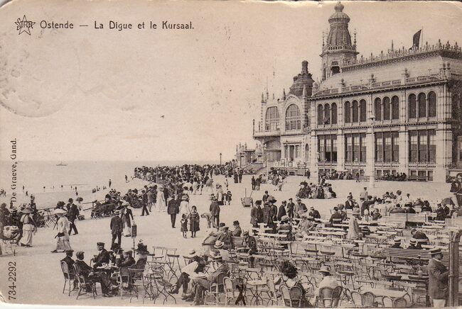 Star. - Ostende - La digue et le Kursaal. - Ostend - The esplanade and Casino. Het Groot Strand, de Zeedijk, het Casino-Kursaal (derde, het westelijk gedeelte), kant Petit Nice.