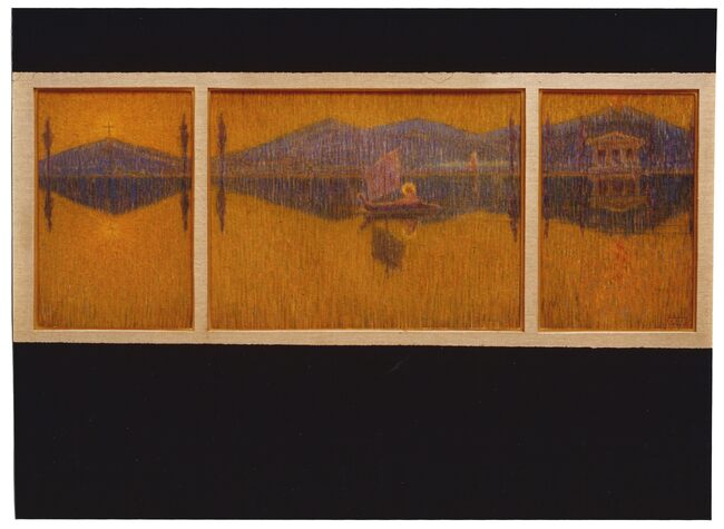 Het meer van Genesareth (1912?) / Jan De Clerck. - Pastel op ruw karton, middenpaneel 37 x 48 cm, 2 zijpanelen 37 x 24 cm. - Bezit : Museum voor Moderne Religieuze Kunst (Oostende)