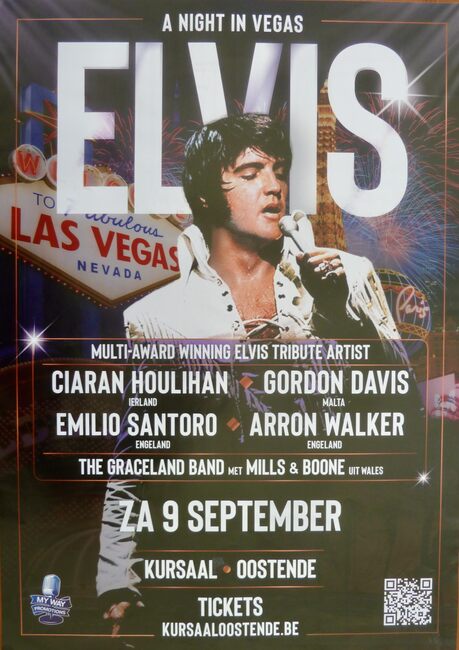 Formaat : 60 x 42 cm. - Multi-award winning Elvis tribute artist. Ciaran Houlihan (Ierland), Gordon Davis (Malta), Emilio Santora (Engeland), Arron Walker (Engeland), The Graceland Band met Mills & Boone uit Wales…