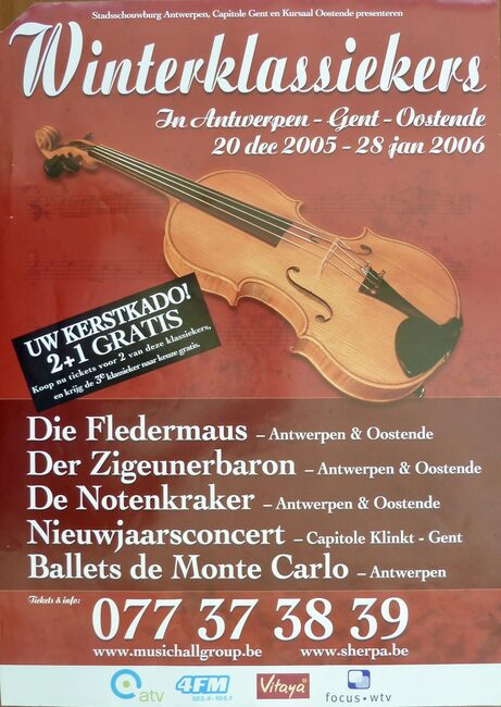 Formaat : 59 x 42 cm. - Die Fledermaus - Antwerpen en Oostende. Der Zigeunerbaron - Antwerpen en Oostende. De Notenkraker - Antwerpen en Oostende. Nieujaarsconcert - Capitole Klinkt Gent. Ballets de Monte Carlo -…