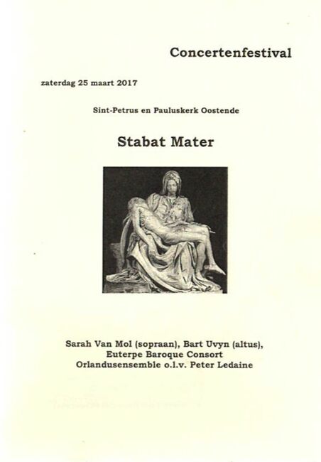 Orlandusensemble o.l.v. Peter Ledaine. - Sarah Van Mol (sopraan), Bart Uvyn (altus), Eueterpe Baroque Consort. - Deze concerten worden georganiseerd met de steun van Kerkfabriek st.-Petrus en Paulus Oostende, Stadsbestuur…