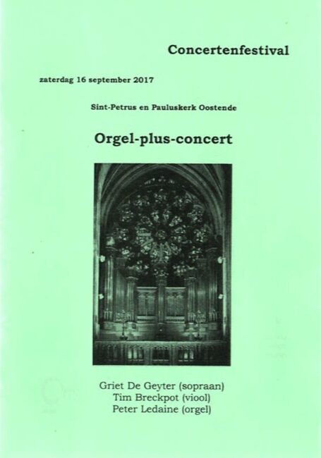 Griet De Geyter (sopraan), Tim Breckpot (viool), Peter Ledaine (orgel). - Deze concerten worden georganiseerd met de steun van Kerkfabriek st.-Petrus en Paulus Oostende, Stadsbestuur en de dienst cultuur van de…