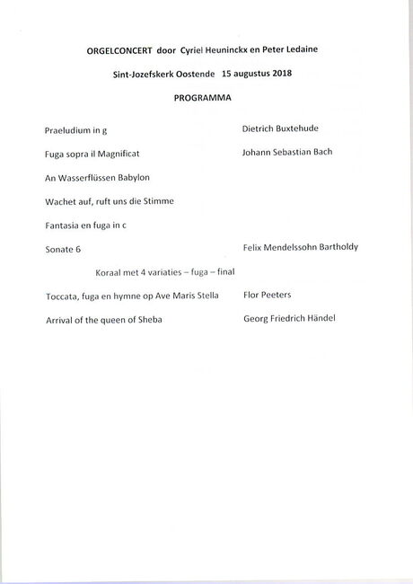 Orlandusensemble o.l.v. Gunter Carlier ; Peter Ledaine, orgel. - Deze concerten worden georganiseerd met de steun van Kerkfabriek st.-Petrus en Paulus Oostende, Stadsbestuur en de dienst cultuur van de stadOostende en het…