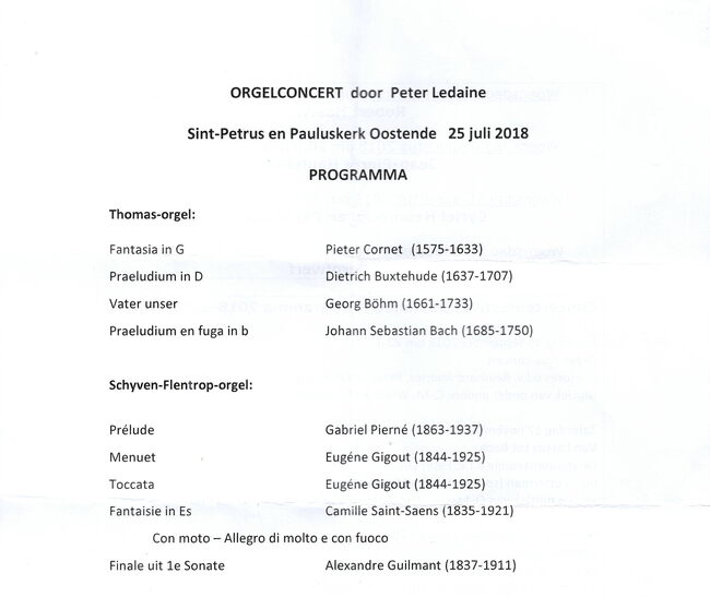 Orlandusensemble o.lv.Peter Ledaine. - Deze concerten worden georganiseerd met de steun van Kerkfabriek st.-Petrus en Paulus Oostende, Stadsbestuur en de dienst cultuur van de stadOostende en het Provinciebestuur van West…