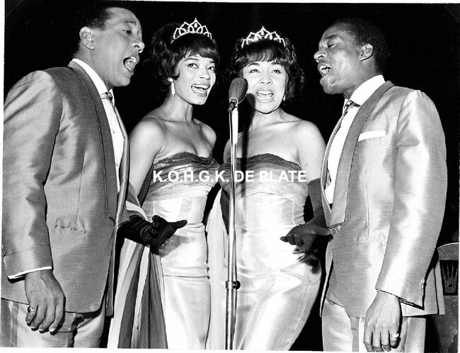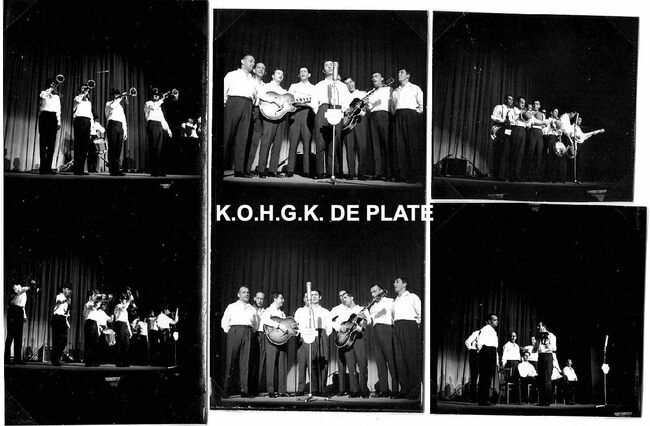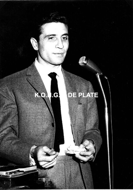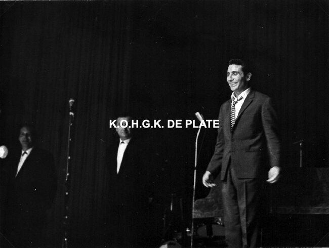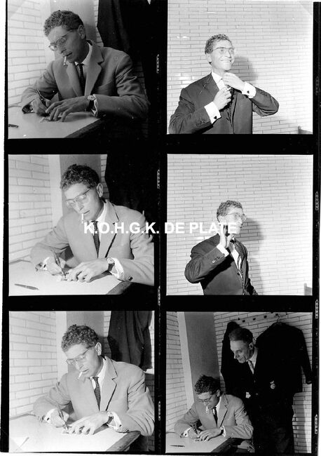Formaat : 12 x 8 cm. - 6 foto's 4 x 4 cm. - Hij trad op in het eerste gedeelte met het orkest Eddie De Latte. In het tweede gedeelte, Colette Renard