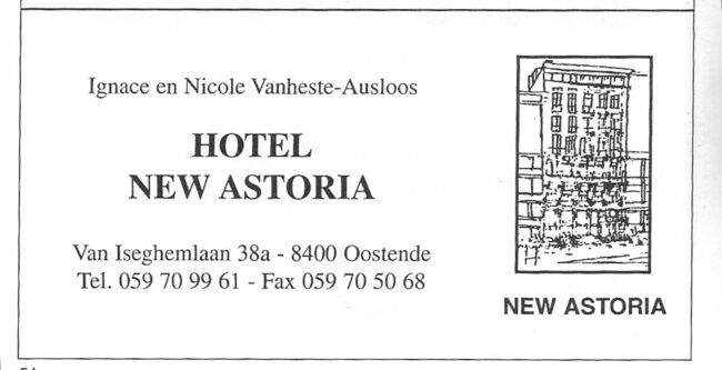 Advertentie : Hotel New Astoria. Van Iseghemlaan 38a, Oostende