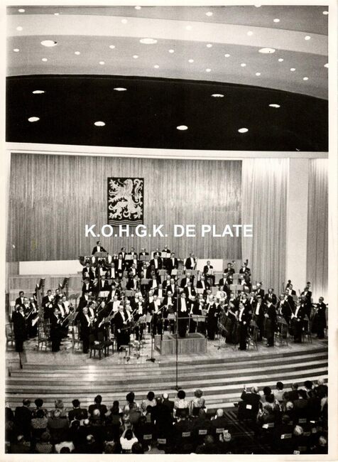 Formaat : 13 x 18 cm. - Het NIR Symfonisch orkest onder de leiding van Daniel Sternefeld. Vierde van rechts, schepen Roger De Kinder.