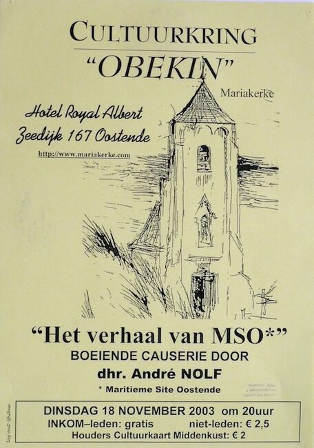 Affiche : Cultuurkring Obekin. "Het verhaal van MSO". Hotel Royal Albert. 18/11/2003