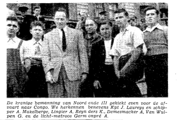 2 foto's : De O.320 "Noordende III" in het Houtdok. Het vertrek op 3 juli 1948 naar Congo