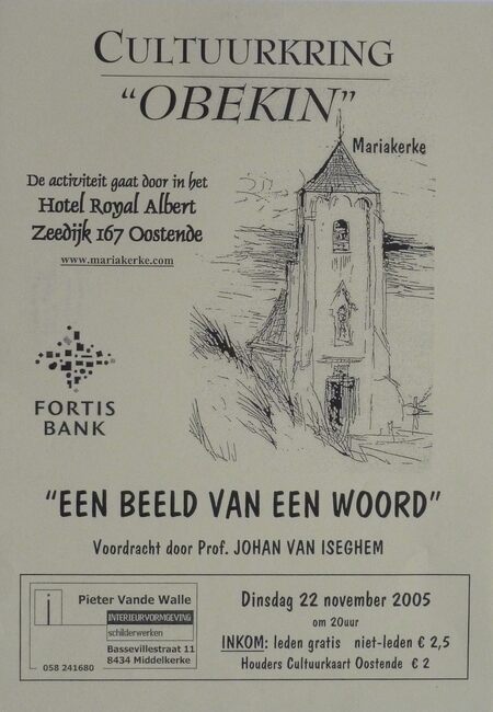 Affiche : Cultuurkring Obekin. "Een beeld van een woord". Hotel Royal Albert. 22/11/2005
