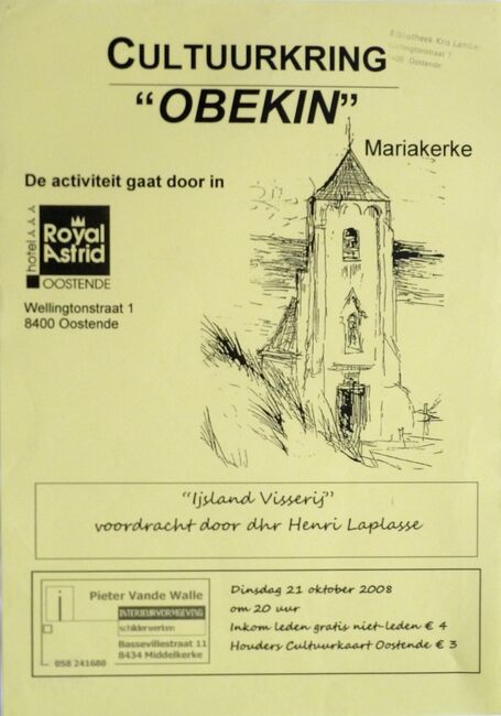 Affiche : Cultuurkring Obekin. Ijsland Visserij. Hotel Royal Astrid. 21/10/2008