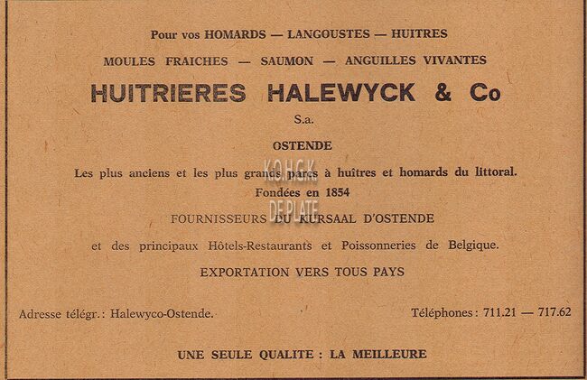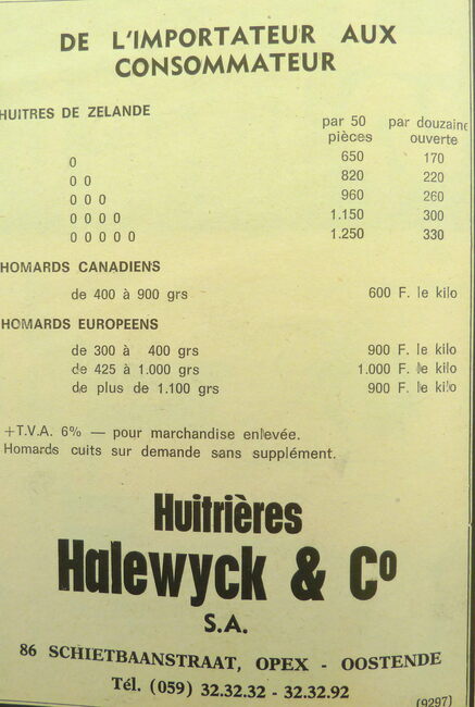 Spécialité des Huitres d'Ostende. Homards vivants. Importation. Exportation.