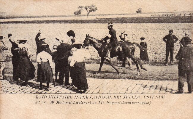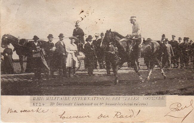 Raid militaire international Bruxelles-Ostende. Mr Deremetz lieutenant au 8e hussards (cheval vulcan)