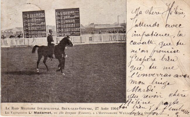 Vanderauwera & Cie Bruxelles. - Le raid militaire international Bruxelles-Ostende le 27-08-1902. Le vainqueur Lt Madamet (France) à l'hippodrome Wellington