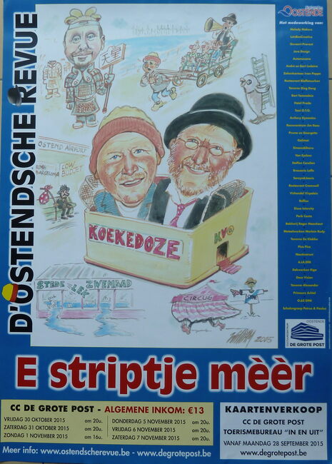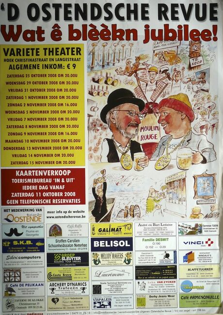 FEYS FREDDY (MUZIKANT)(OOSTENDSE REVUE)LABEEUW RIK (OOSTENDSE REVUE) (TONEELREGISSEUR)VANPRAET GUNTHER (OOSTENDSE REVUE)DUYCK ROBERT (TJEPPEN KROTTE) (OOSTENDSE REVUE)DUPON PATRICK (KAMIEL PULLE) (OOSTENDSE REVUE) (ACCORDEONIST)BALLETSCHOOL ALANAH WERANGAOOSTENDSE REVUE (NAAM)GIF MOA SLUNSE (REVUE)VARIETE THEATER (CHRISTINASTRAAT)