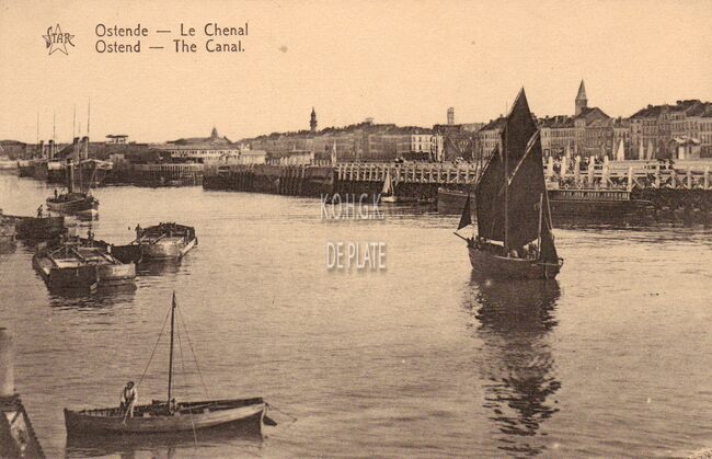 Star. - Ostende - Le Chenal. Ostend - The Canal. - De havengeul, met vooraan een Oostende schover en in het midden van de havengeul, een panneschuit. Wat verder, een sleepboot en een paar pakketboten van de Oostende -…