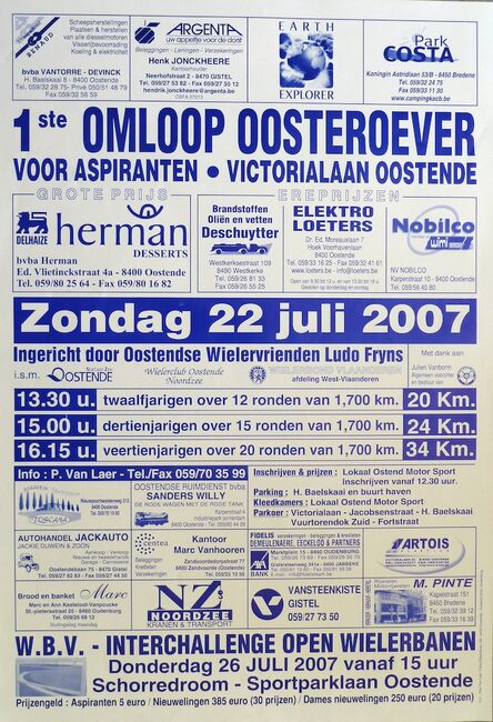Affiche : Oostendse Wielervrienden Ludo Fryns. 1 ste OMLOOP OOSTEROEVER voor aspiranten. VICTORIALAAN OOSTENDE. 22 juli 2007.