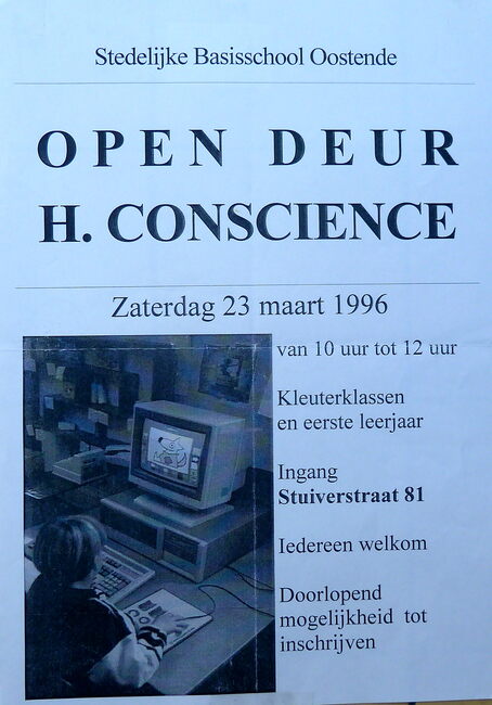 Affiche : Stedelijke basisschool Hendrik Conscience. Open deur H. Conscience. Stuiverstraat 81. 23/03/1996