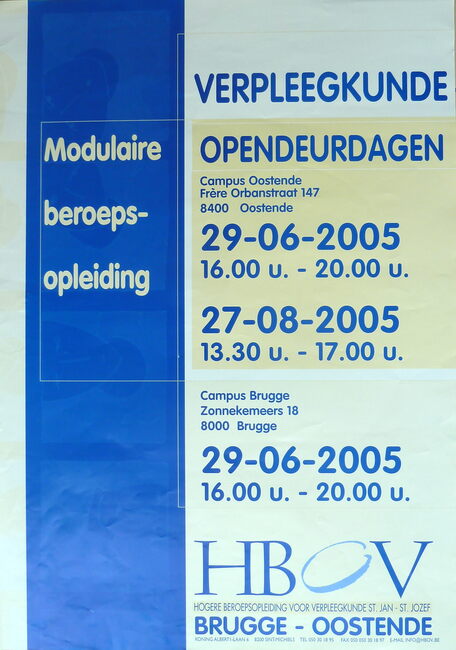 Affiche : HBOV. Verpleegkunde : Opendeurdagen. Campus Oostende. Frère-Orbanstraat 147. 29/06 en 27/08/2005