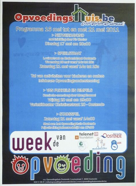 Affiche : Opvoedingshuis Oostende. Week van de opvoeding. Opvoedingshuis Oostende. 16/05 tot 21/05/2011