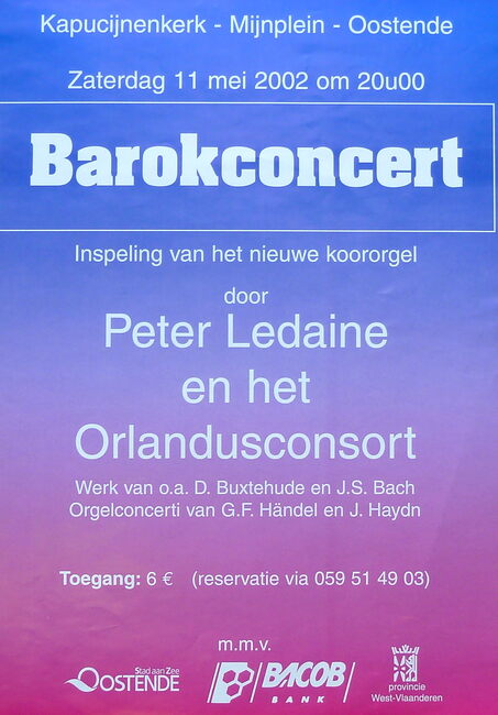 Orlandusensemble o.l.v. Peter Ledaine ; Griet De Geyter (sopraan. - Deze concerten worden georganiseerd met de steun van Kerkfabriek st.-Petrus en Paulus Oostende, Stadsbestuur en de dienst cultuur van de stadOostende en…